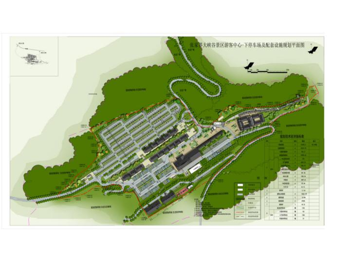 下停車場及配套設(shè)施。該項目地塊位于現(xiàn)景區(qū)出口的西南側(cè),距離S306線約380米,停車場規(guī)劃總面積122595.4平方米(約184畝)。規(guī)劃停車位1250個,其中大客車100位,小客車1080位,環(huán)保車70位,游客最大集聚量為12000人。規(guī)劃地塊依據(jù)地勢、地形、功能共劃分為三個區(qū),即游客服務(wù)中心區(qū)、內(nèi)部環(huán)保車換乘區(qū)、外部客車接待區(qū)。場區(qū)道路由西側(cè)引入,為主入口,東側(cè)臨路端設(shè)為出口。從地塊西端規(guī)劃一條道路至S306線作為新的連接線,游客進(jìn)入線路均由西側(cè)進(jìn)入;東側(cè)出口為原景區(qū)連接線,提升原有道路等級、優(yōu)化彎道。